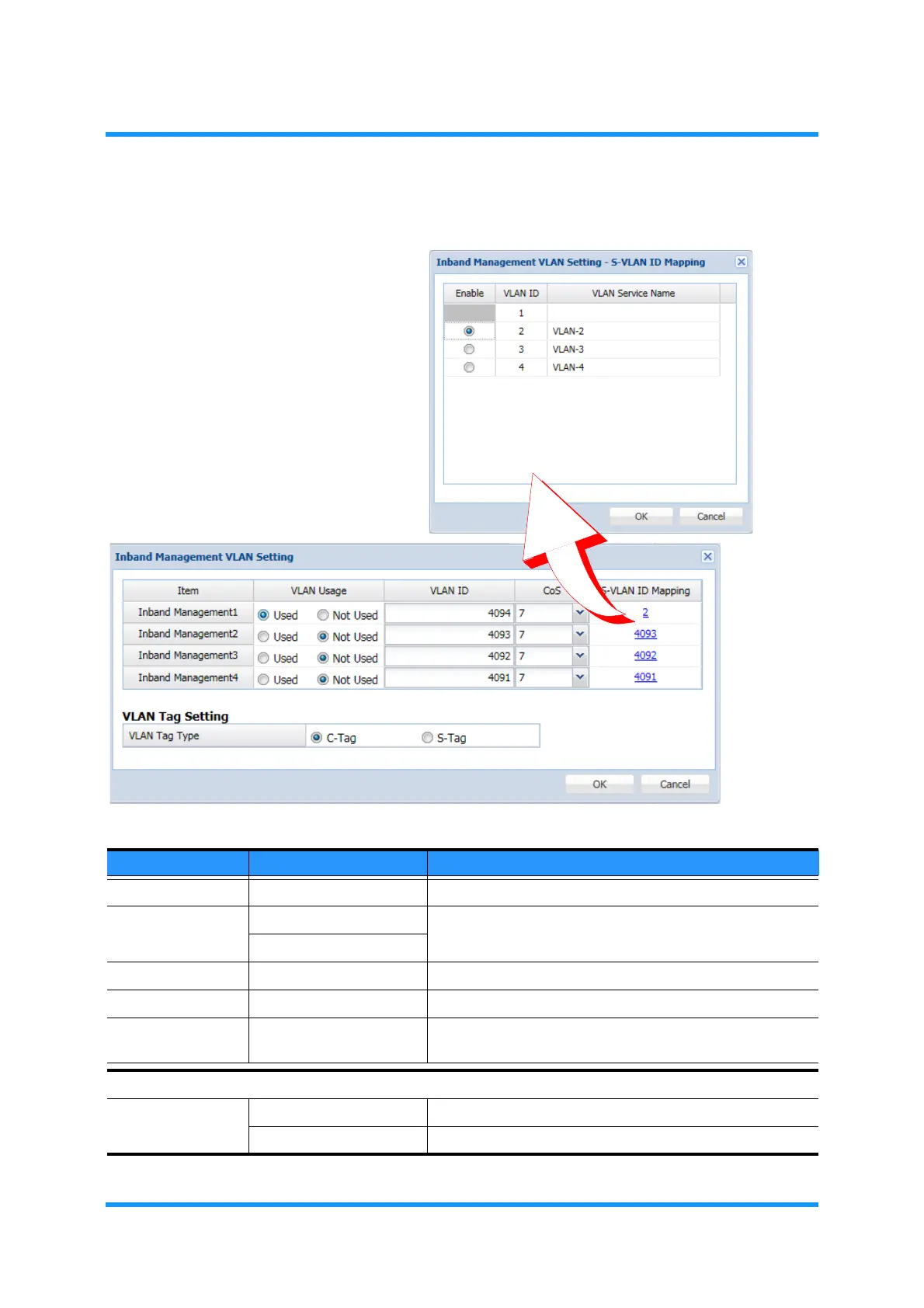 Table 5-4 Inband Management VLAN Setting Parameters