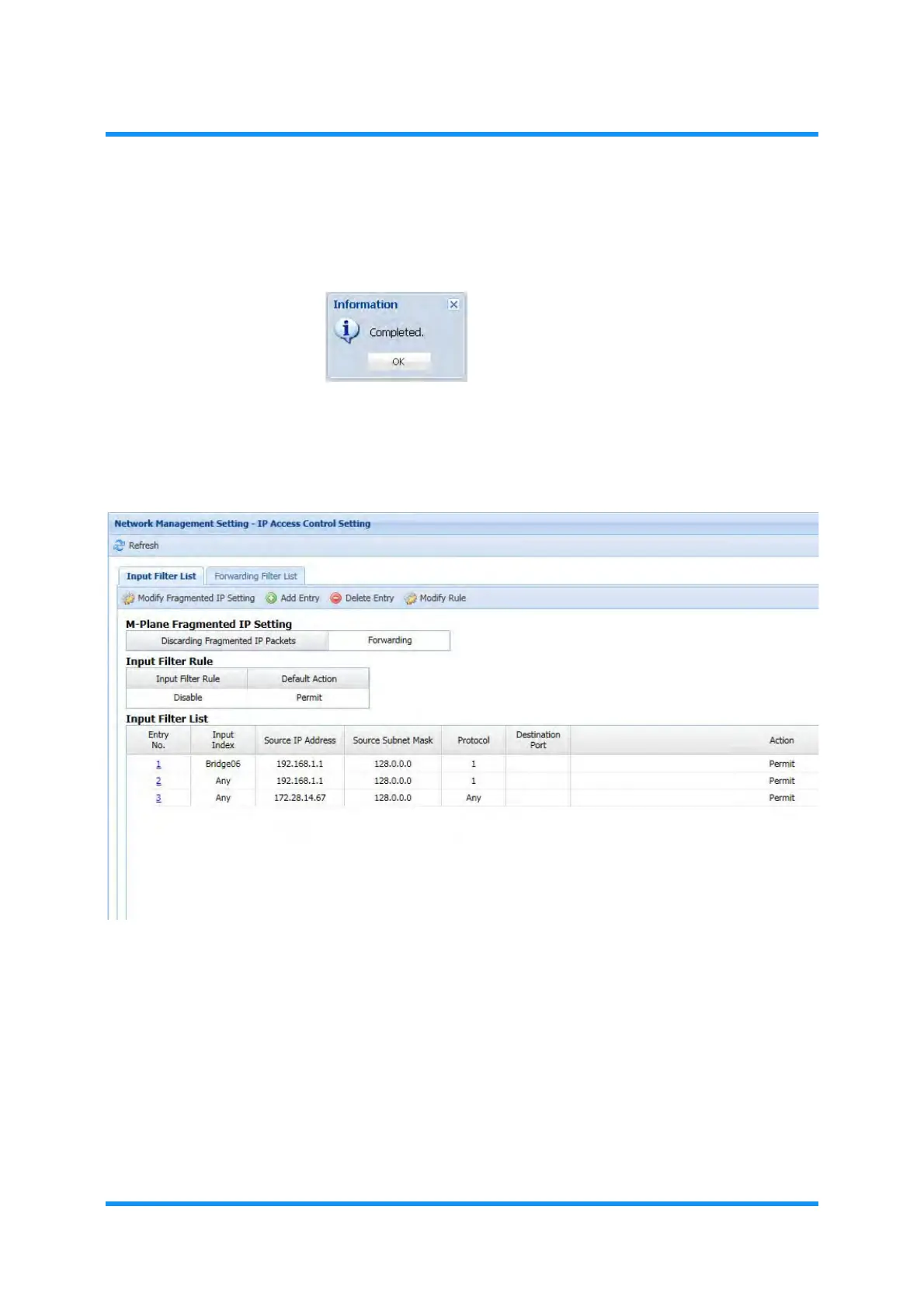 The IP Access Control Setting window updates the information.