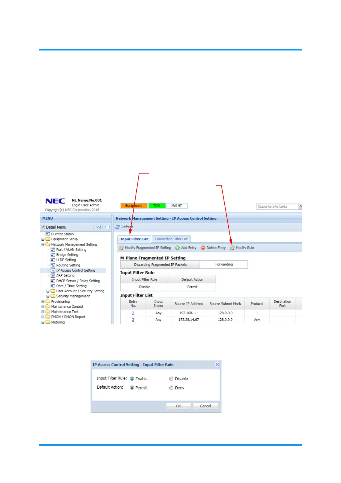 3. In the Input Filter List tabbed page, click the Modify Rule tool button on the tool