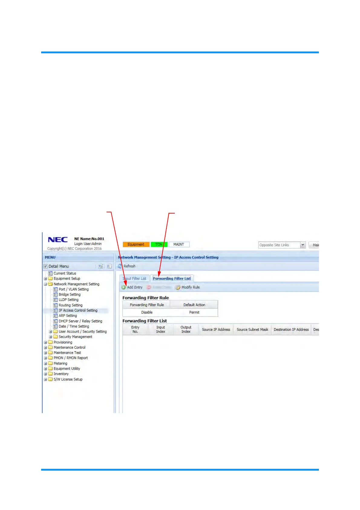 3. In the Forwarding Filter List tabbed page, click the Add Entry tool button on the