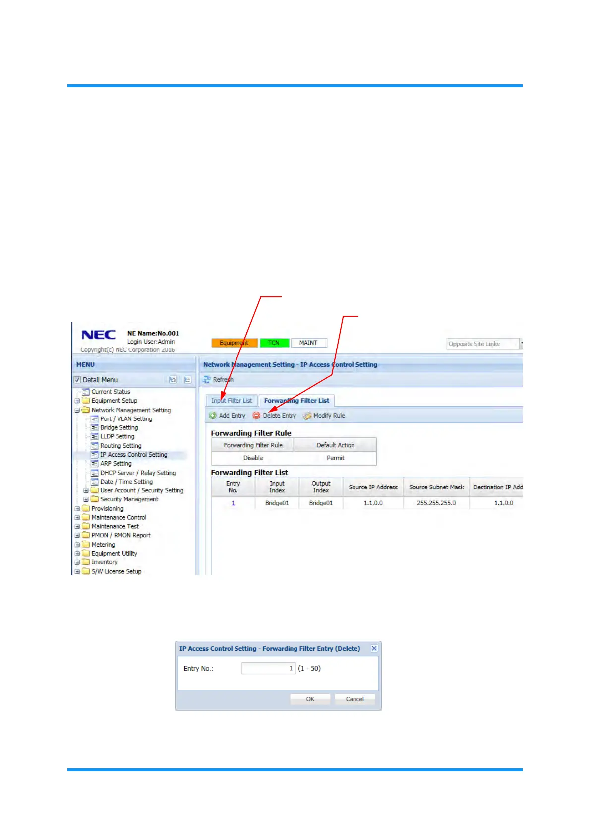 4. Forwarding Filter Entry (Delete) option window appears. Enter the Entry No. of