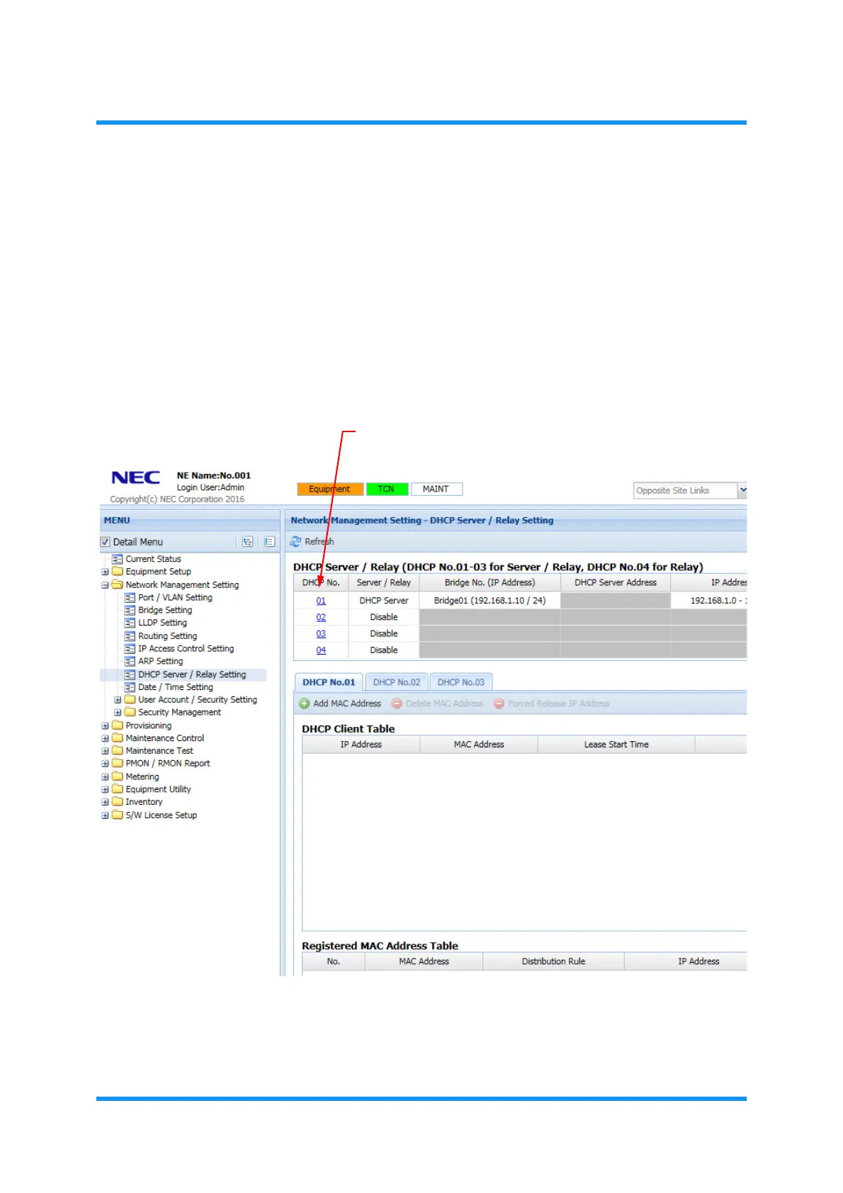 2. In the MENU frame on the left, expand Network Management to select DHCP