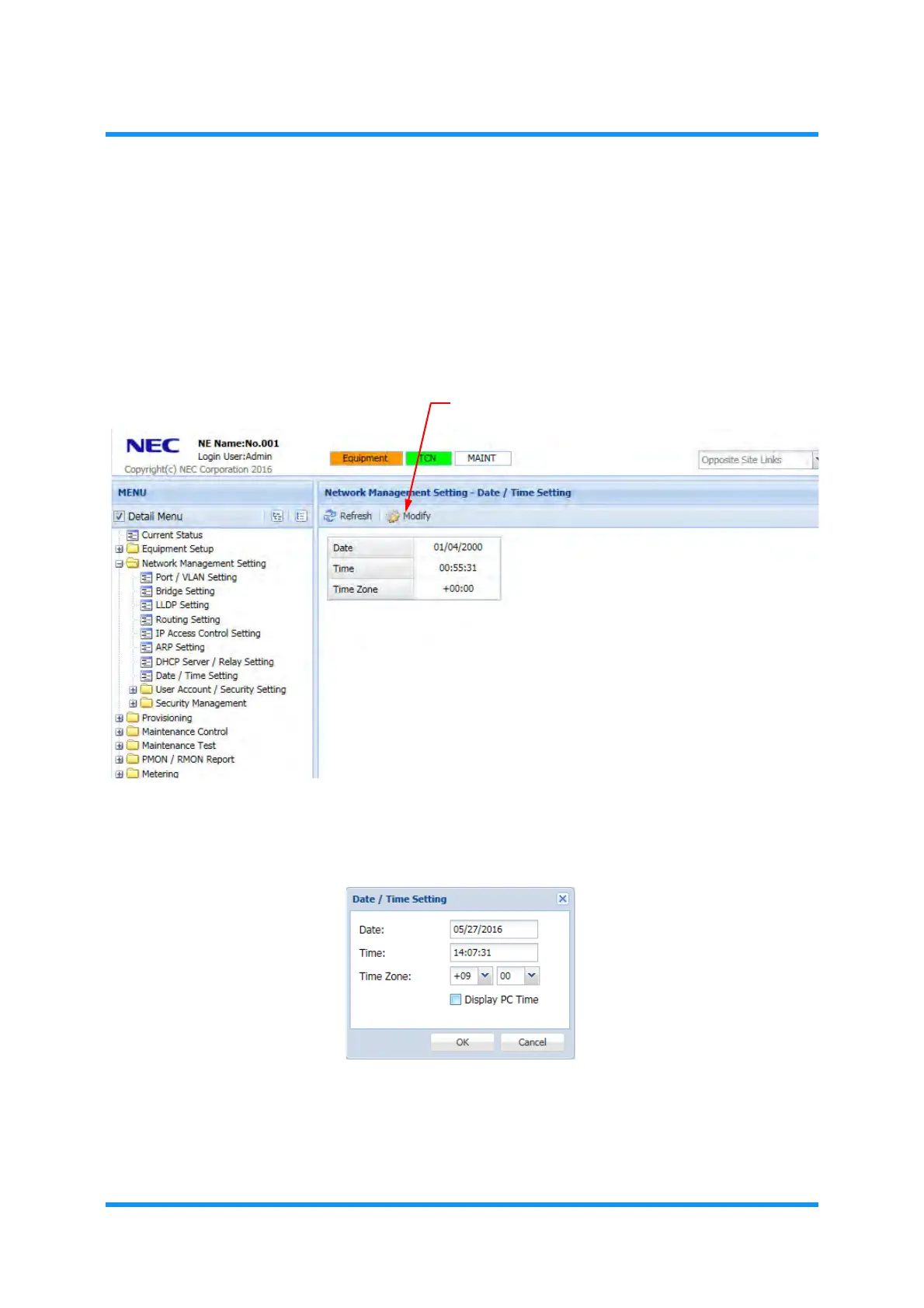 Date/Time Setting. The Date/Time Setting window appears.