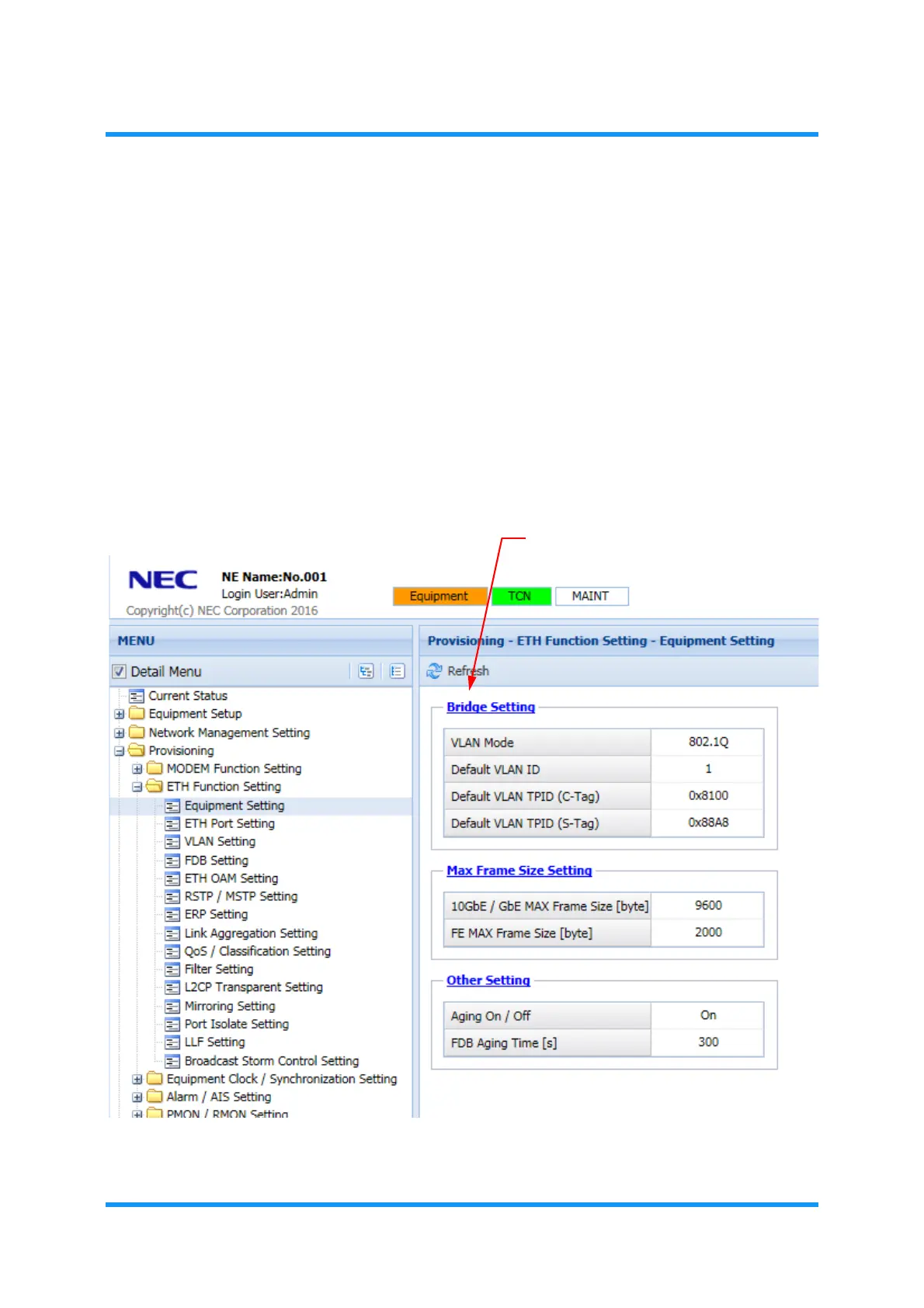 2. In the MENU frame on the left, expand Provisioning, then its submenu ETH
