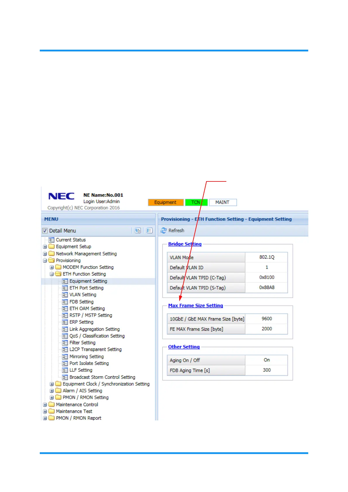 3. Click the Max Frame Size Setting link on the option box.