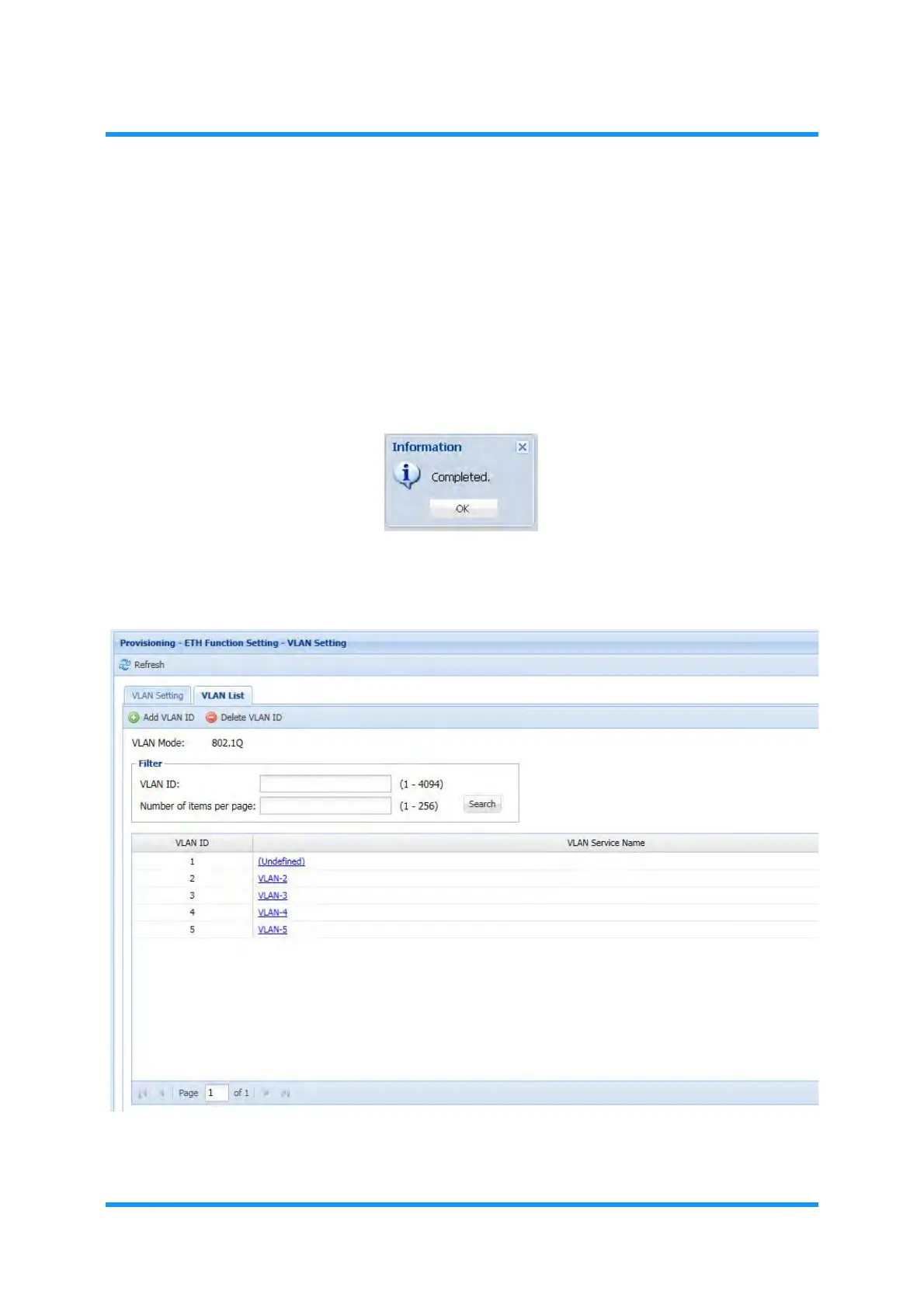 However, for a single entry, the entered VLAN Service Name will be registered