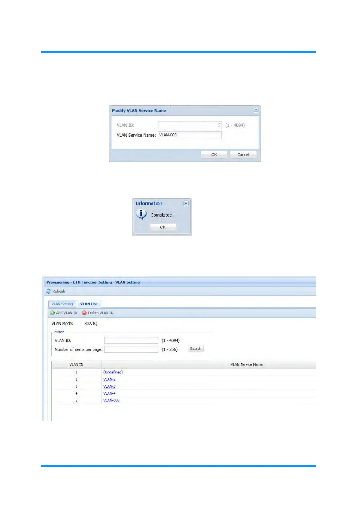 4. Enter the modified/new name into the VLAN Service Name text box, then click