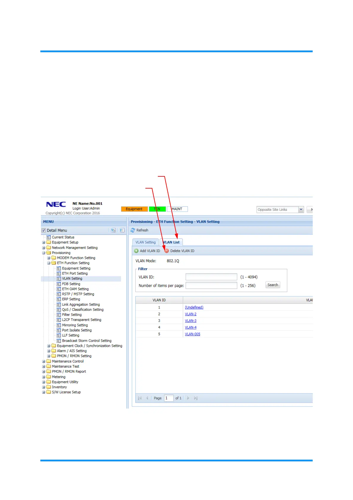 3. In the VLAN List tabbed page, click the Delete VLAN ID tool button on the tool