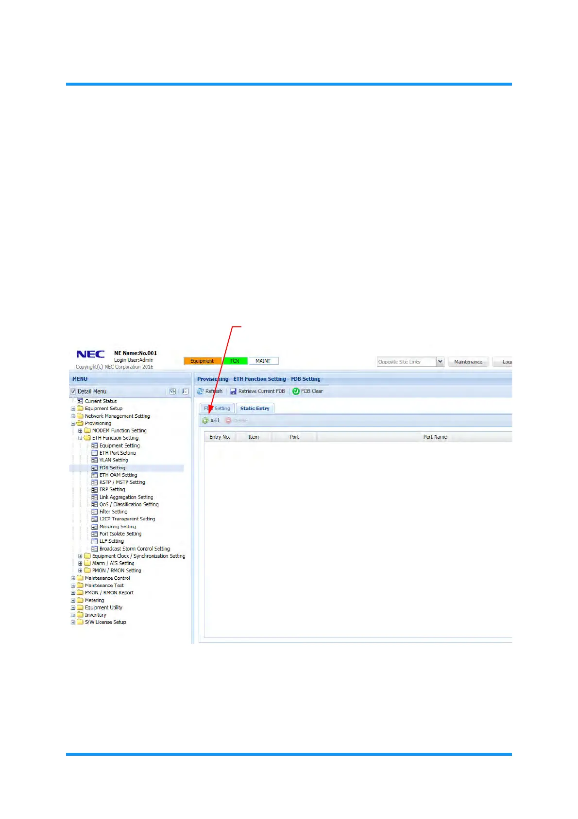 2. In the MENU frame on the left, expand Provisioning, then its submenu ETH