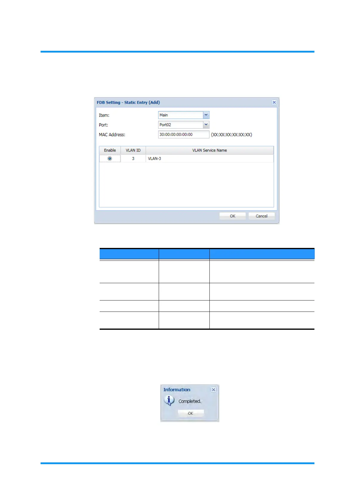 Table 8-13 FDB Setting (Static Entry) Parameters