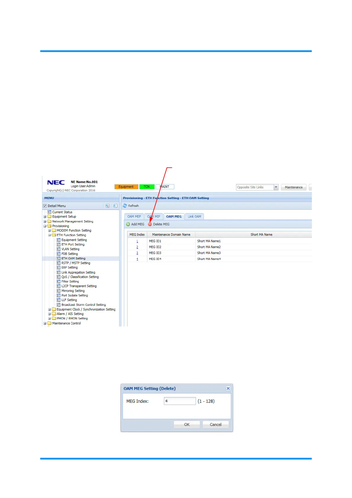 OAM MEG Setting (Delete)