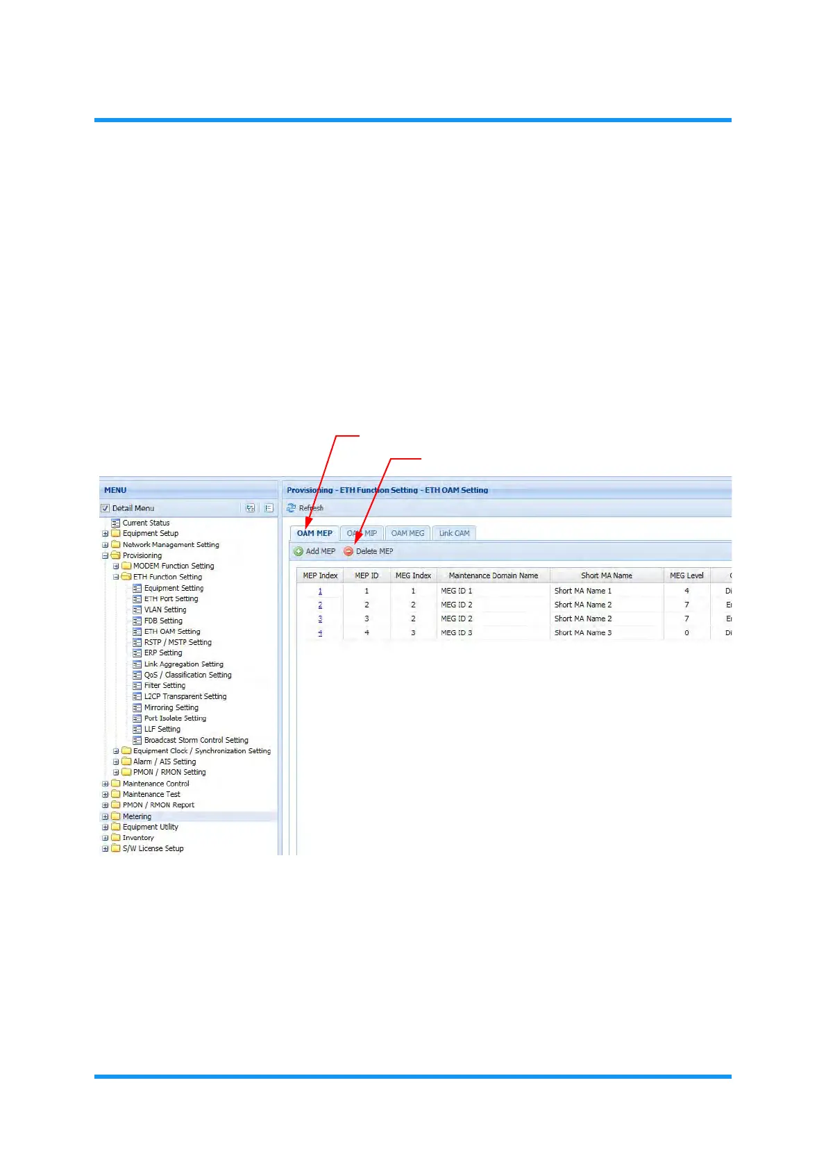 3. In the OAM MEP tabbed page, click the Delete MEP button of the target to be