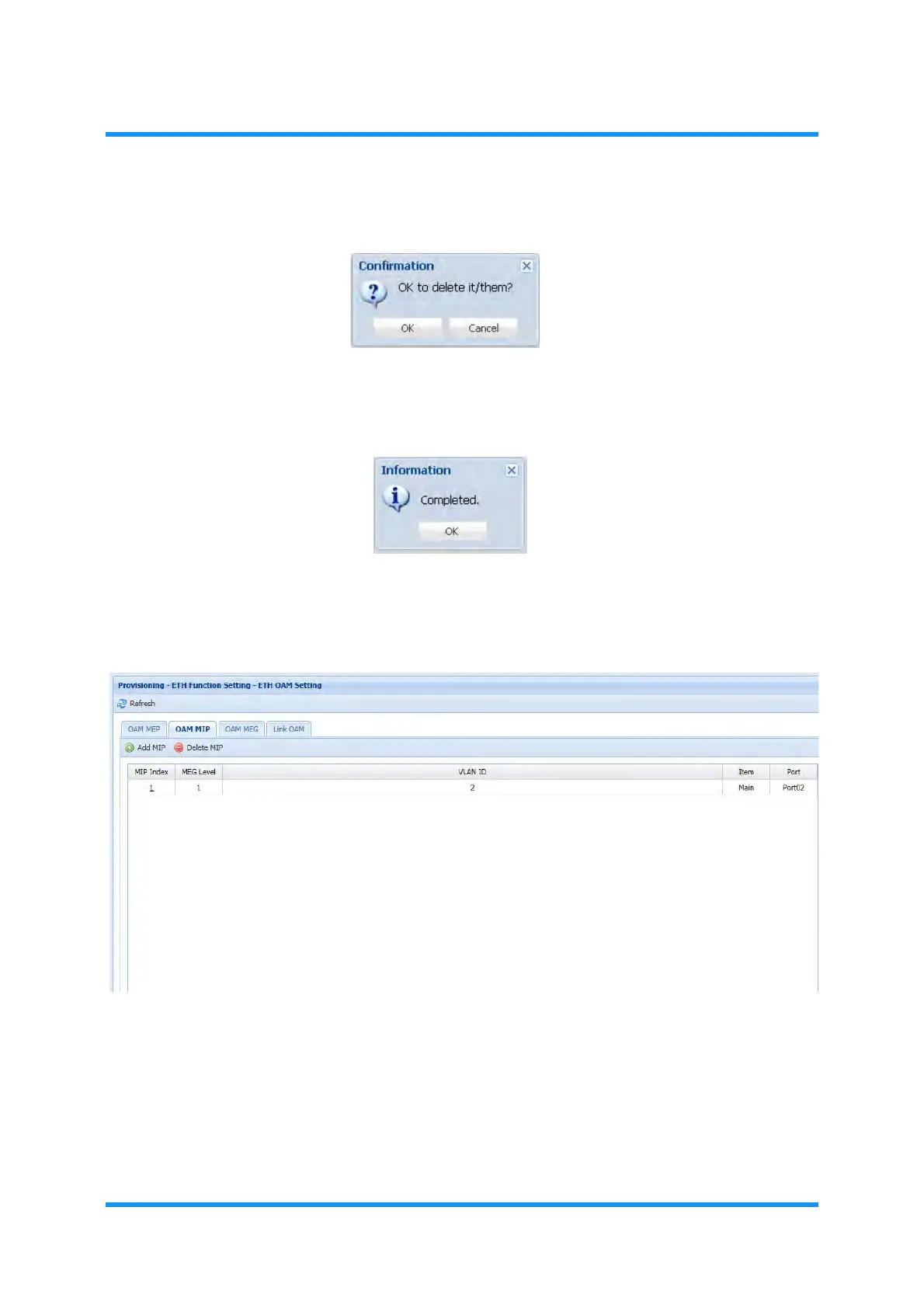 7. The ETH OAM Setting window updates the information. Confirm that the target
