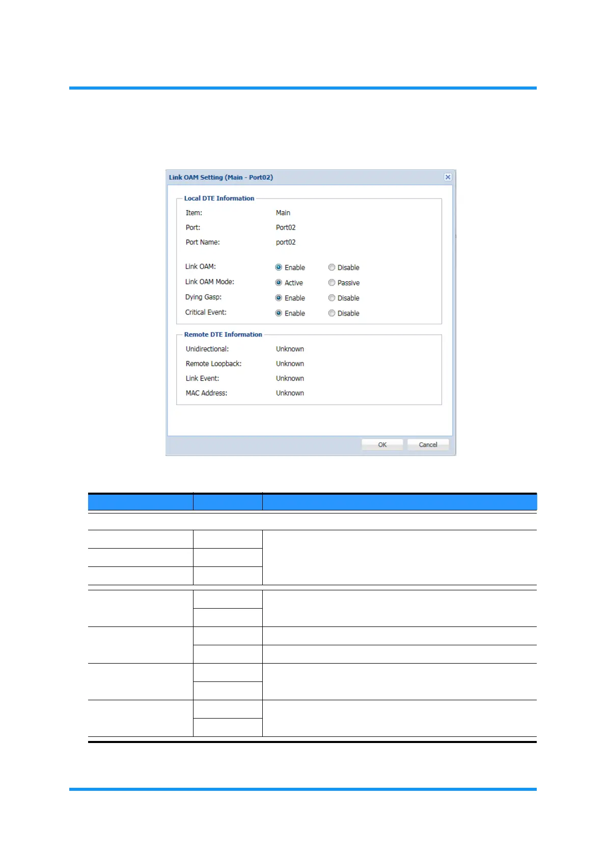 Link OAM Enable Enable/Disable the use of Link OAM function.