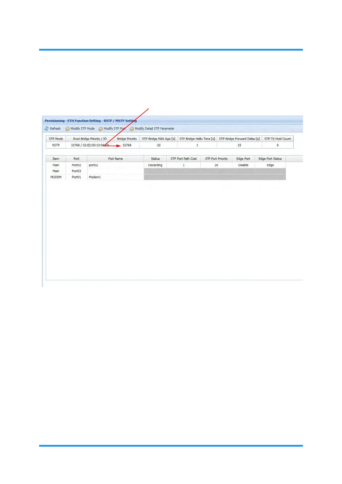 7. The RSTP / MSTP Setting window updates the information. Verify the displayed