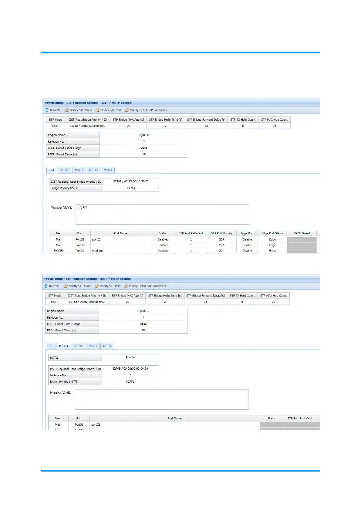 Figure 8-137 MSTP Setting Window (IST Tab)