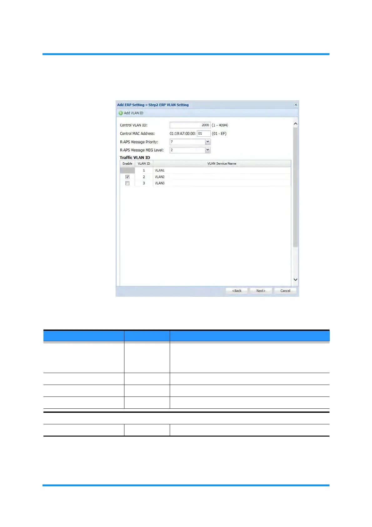 Table 8-27 Step 2 ERP VLAN Setting Parameters
