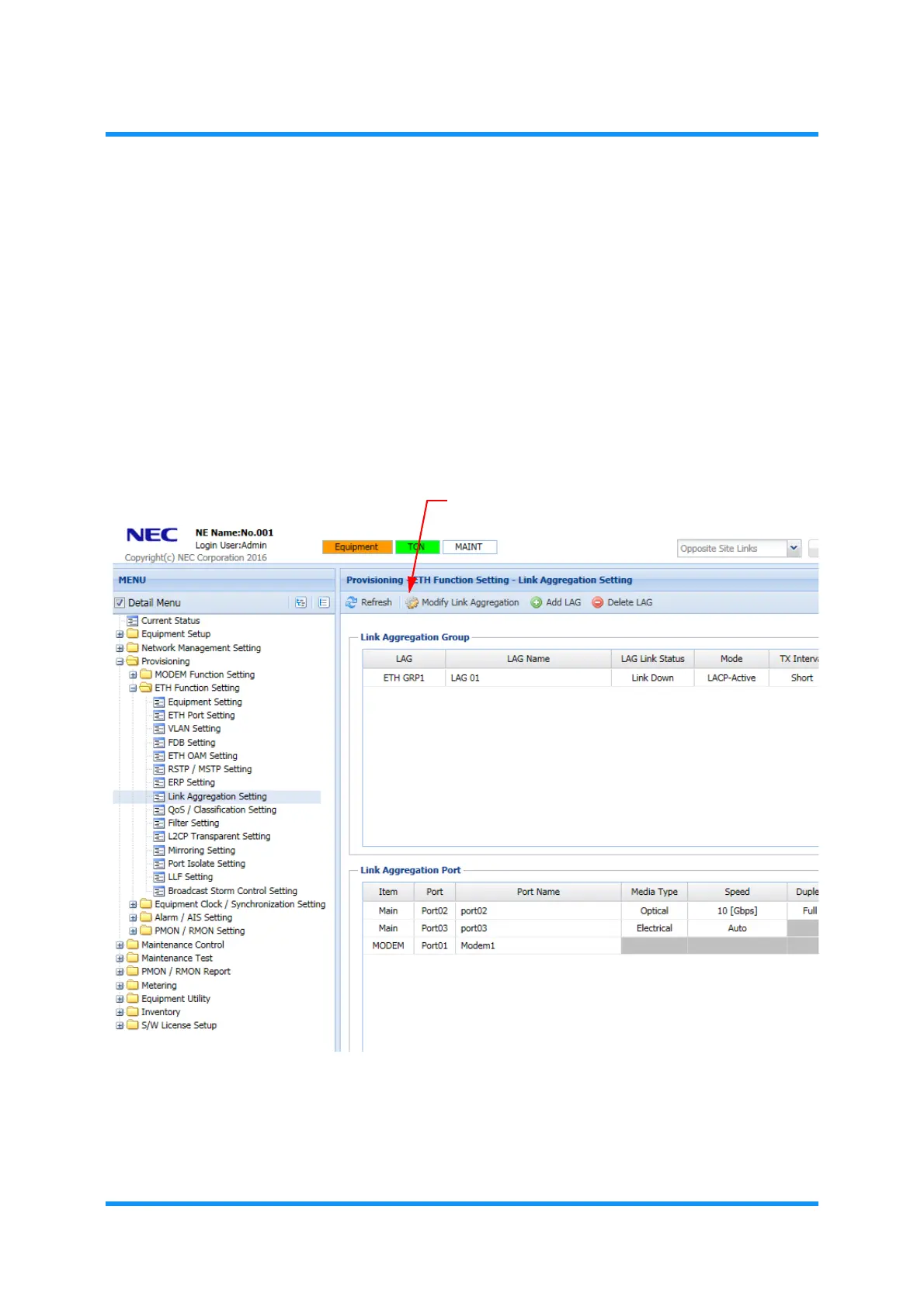 3. Click the Modify Link Aggregation tool button.