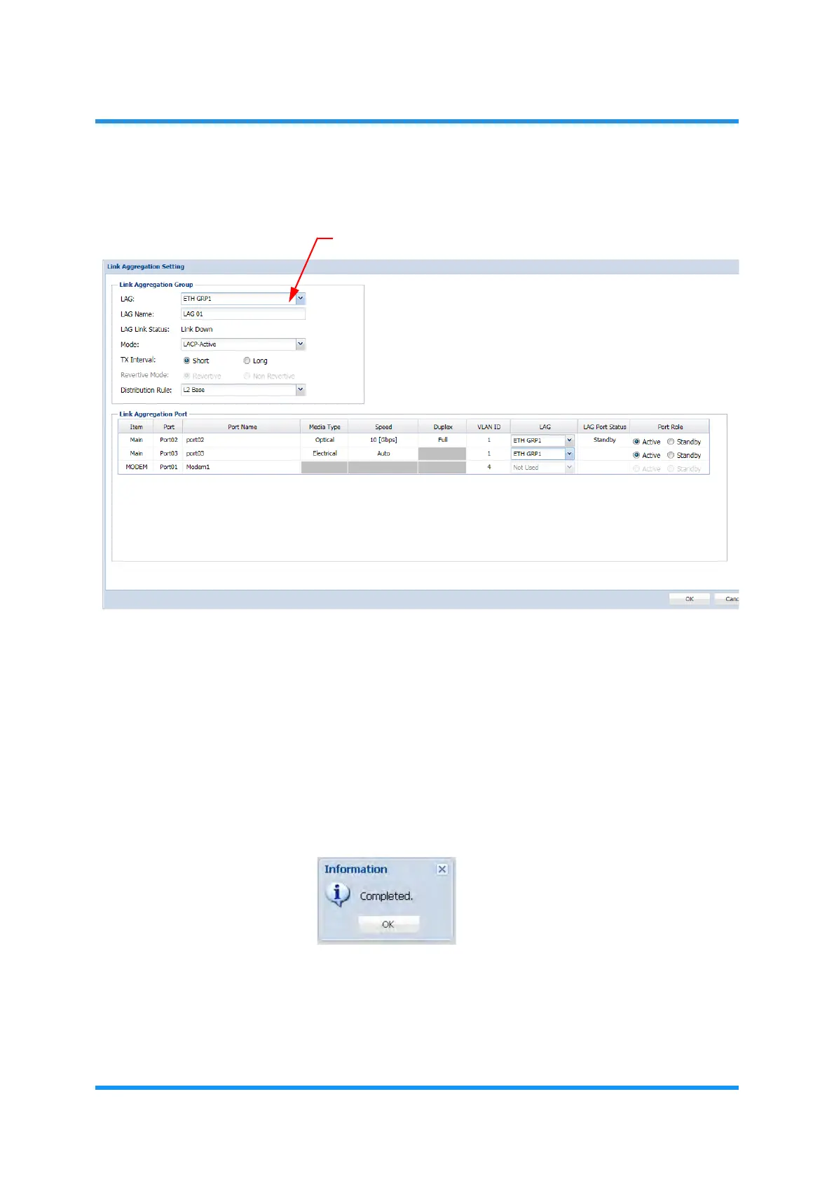 The Link Aggregation Setting window updates the window.
