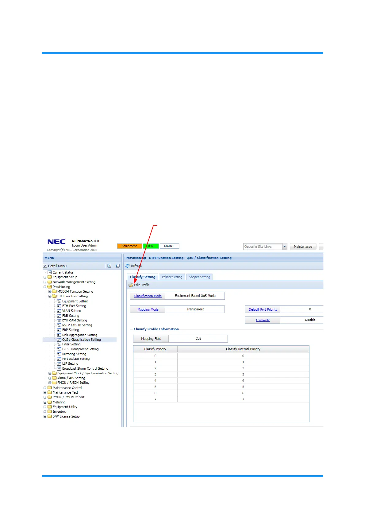 3. Verify that the Classification Mode indicates Equipment Based QoS Mode.