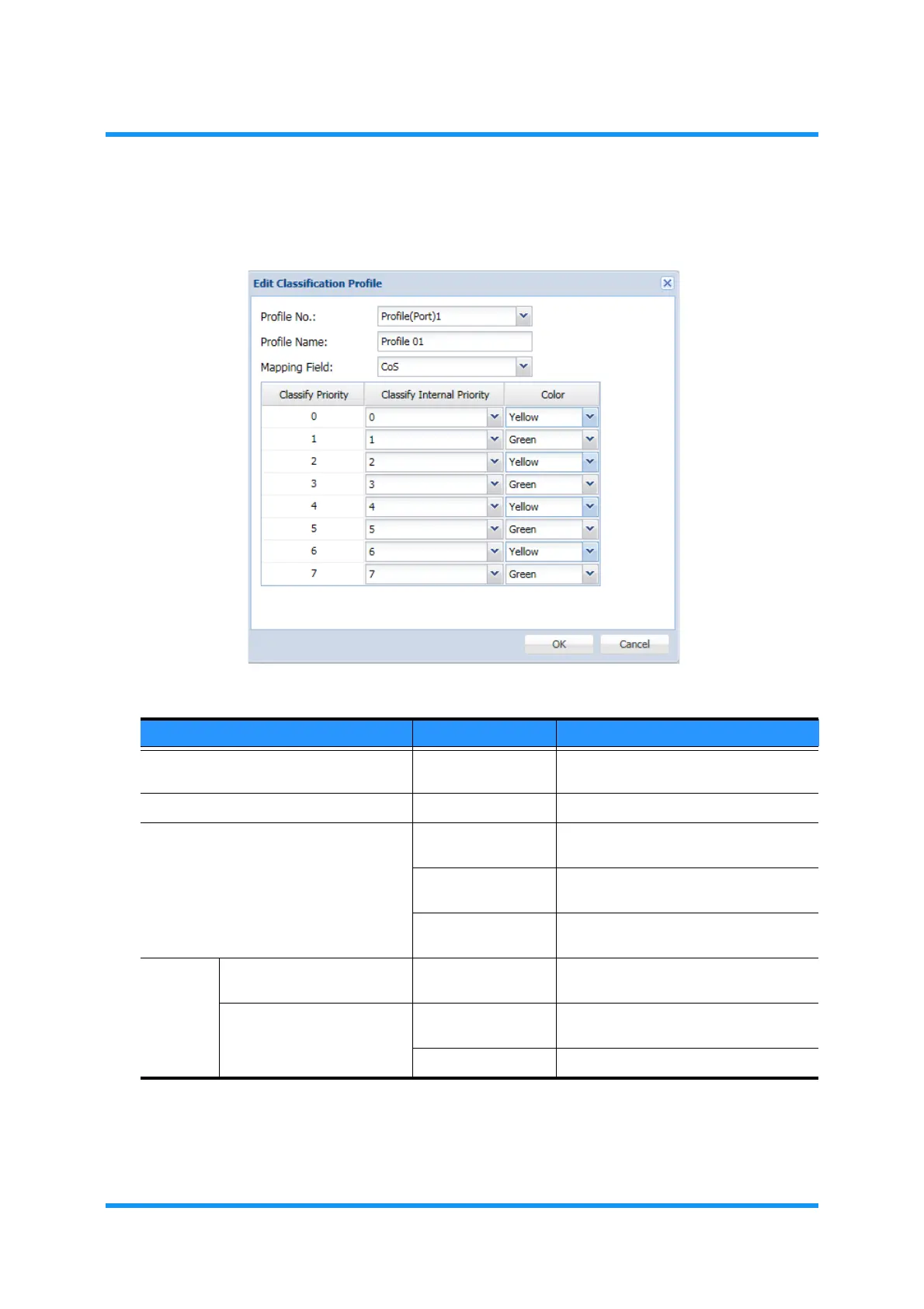 Classify Internal Priority 0 to 7 Specifies the priority of internal use