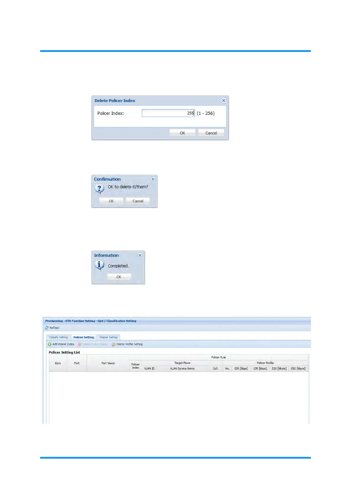 4. Enter the Policer Index number to delete, then click the OK button.