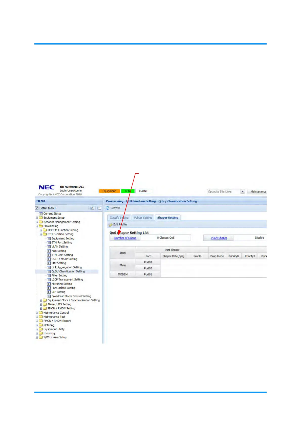 8.10.3.1 QoS Class and Shaper Setting