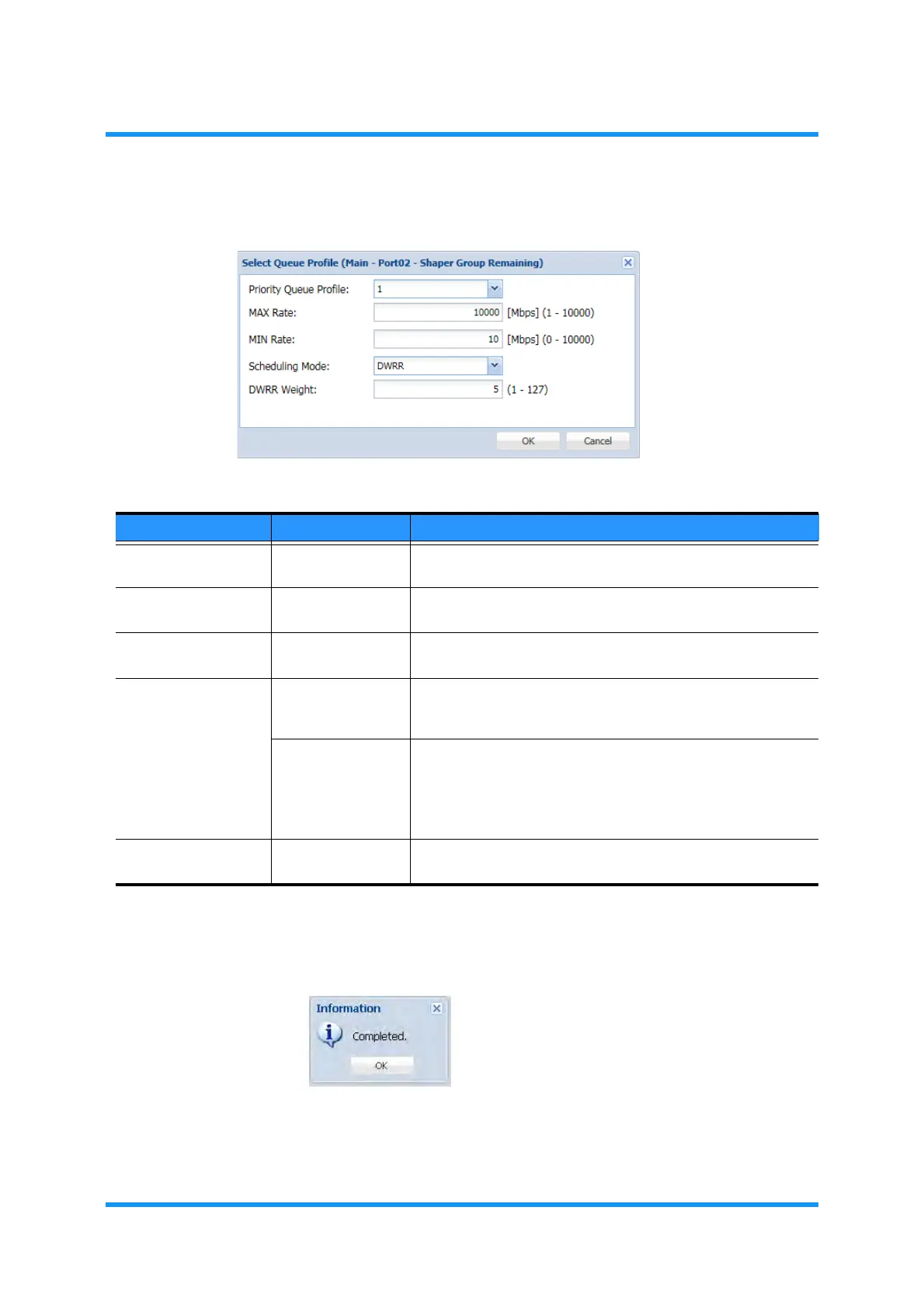 DWRR Weight 1 to 127 Set the priority for DWRR Scheduling Mode. This parameter is