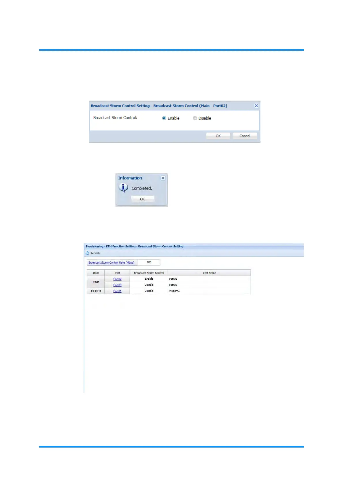 6. The Broadcast Storm Control Setting window updates the information. Verify