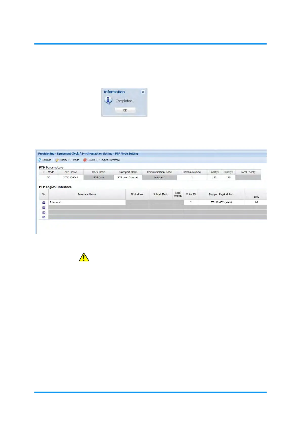 9. The PTP Mode Setting window updates the PTP Parameters information.Verify