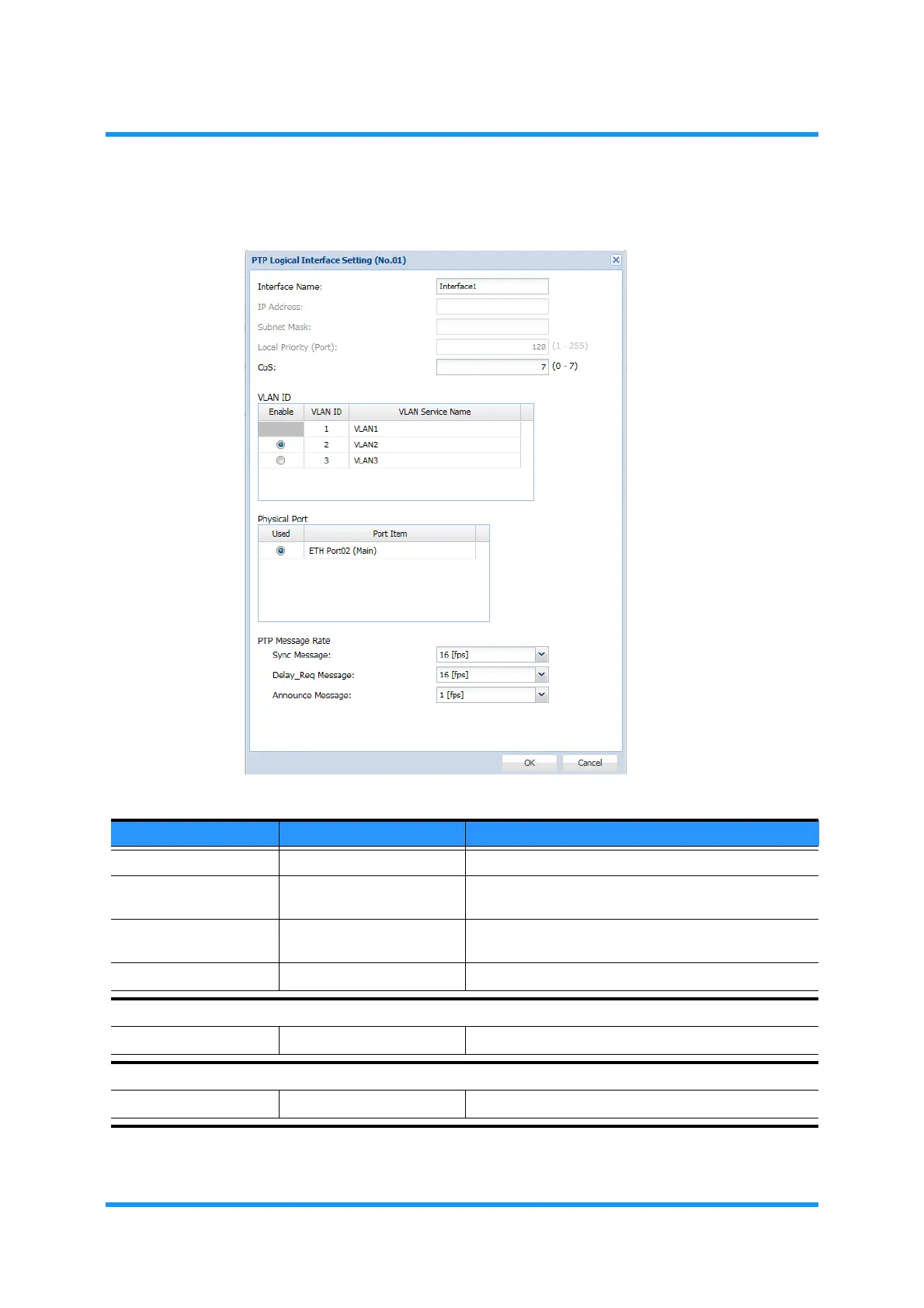 Table 9-4 PTP Logical Interface Setting Parameters (1 of 2)