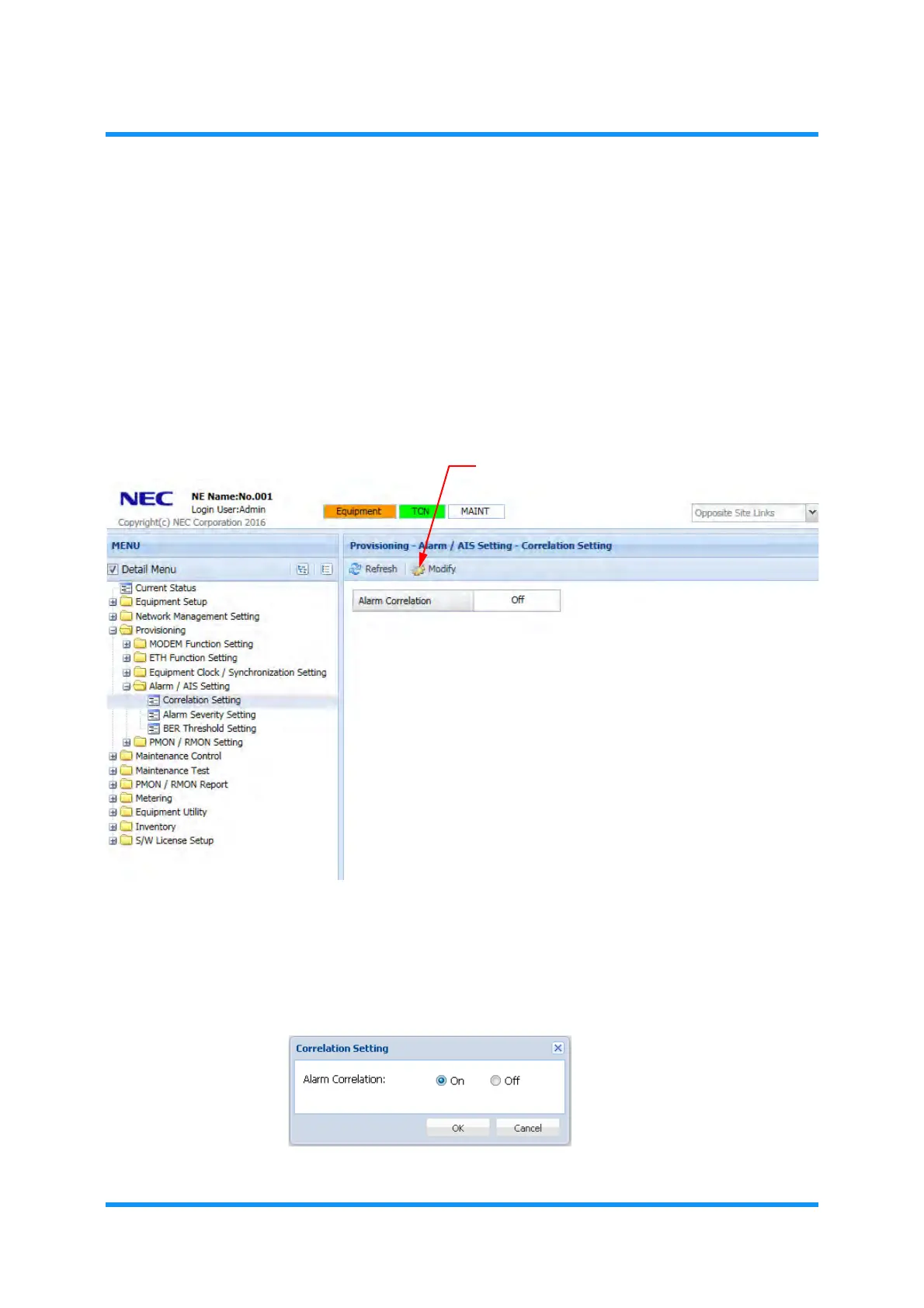 2. In the MENU frame on the left, expand Provisioning, then its submenu Alarm/