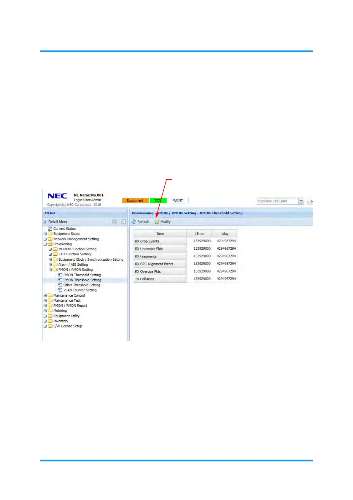2. In the MENU frame on the left, expand Provisioning, then its submenu PMON/