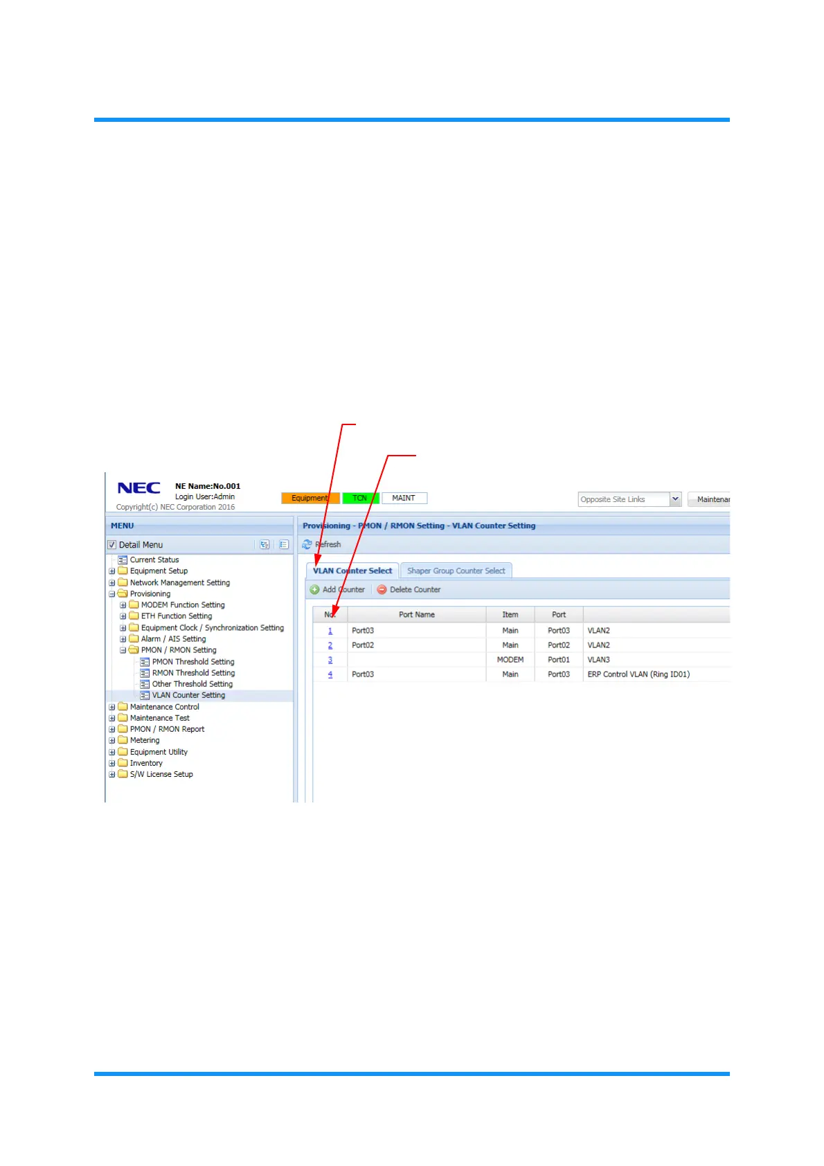 2. In the MENU frame on the left, expand Provisioning, then its submenu PMON/