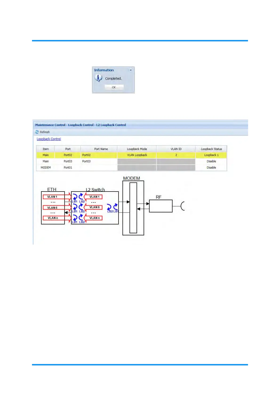 8. L2 Loopback Control window updates the information.