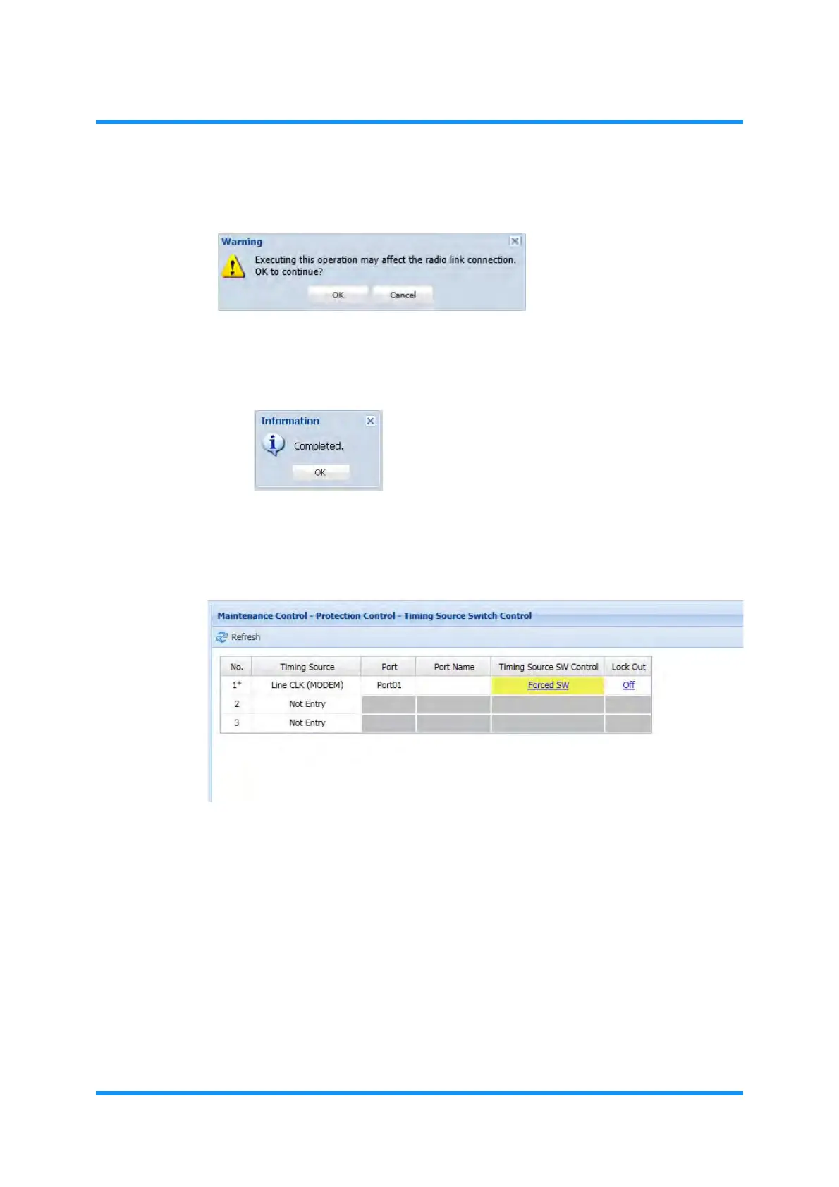 8. The Timing Source Switch Control window updates the information. Verify that