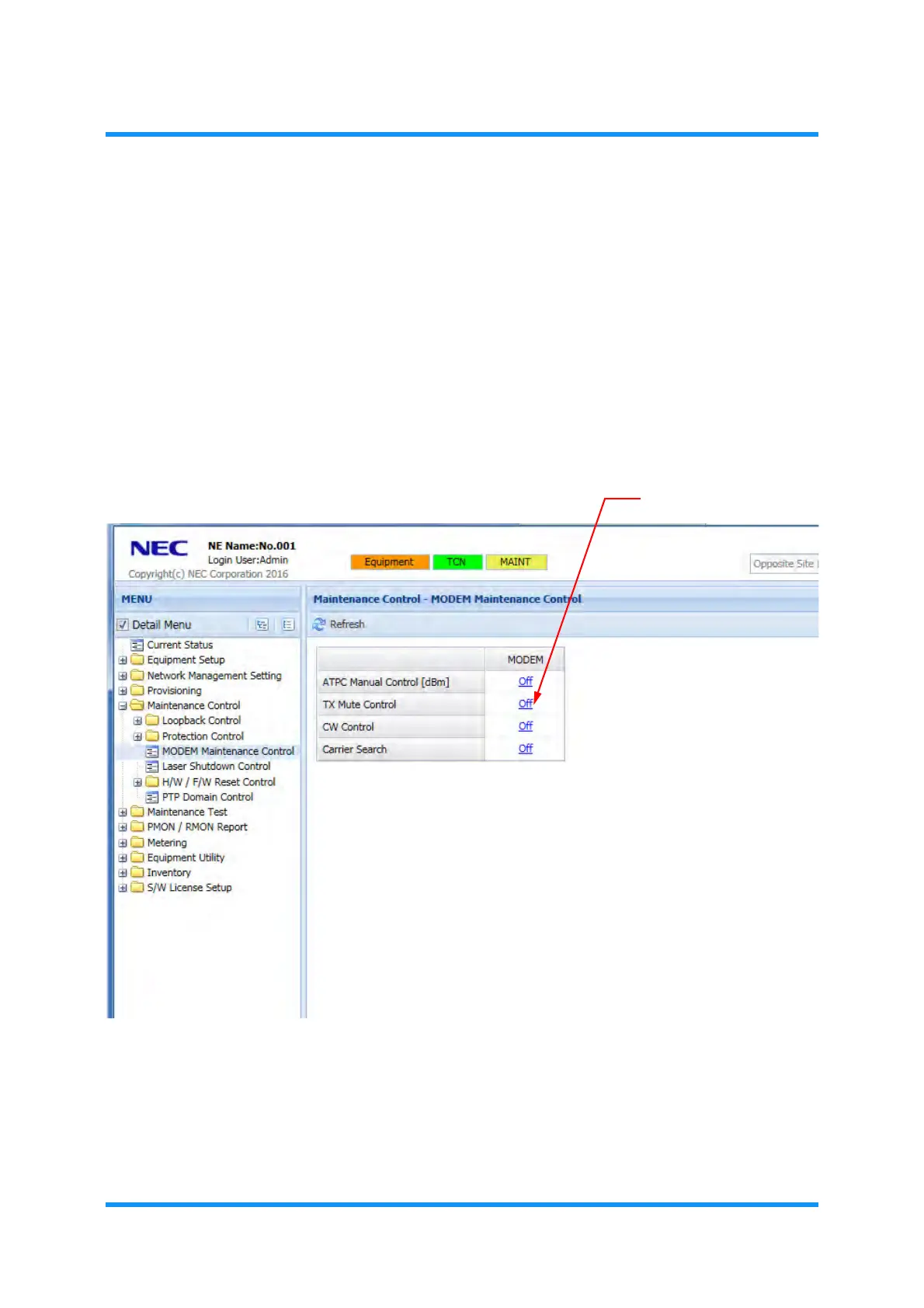 MENU frame on the left, expand the Maintenance Control to select