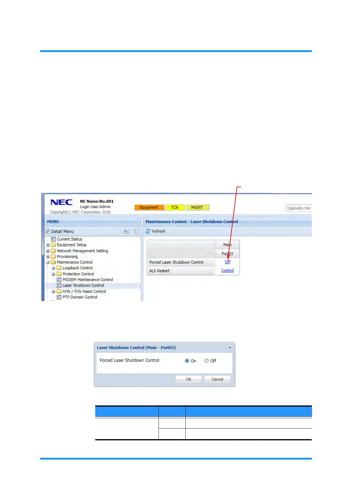 Table 4-8 Forced Laser Shutdown Control