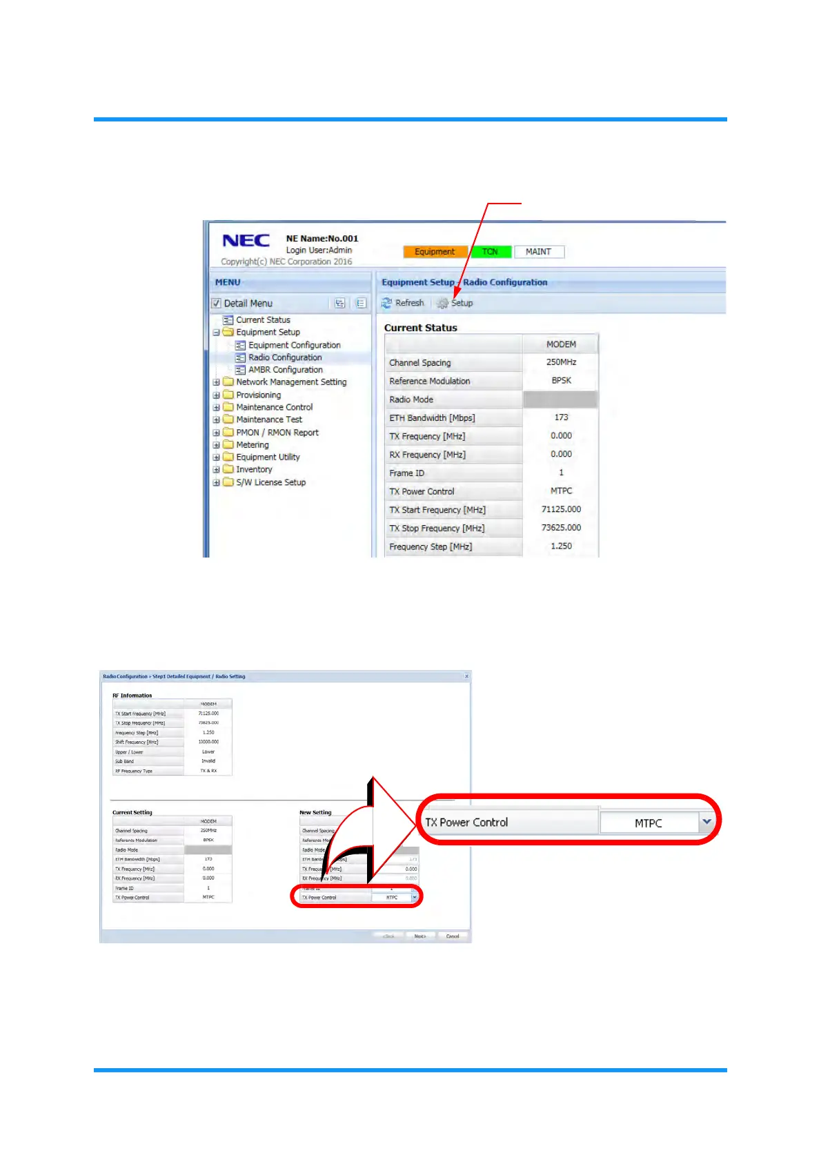 Figure 8-2 Step 1 Detailed Equipment / Radio Setting Window