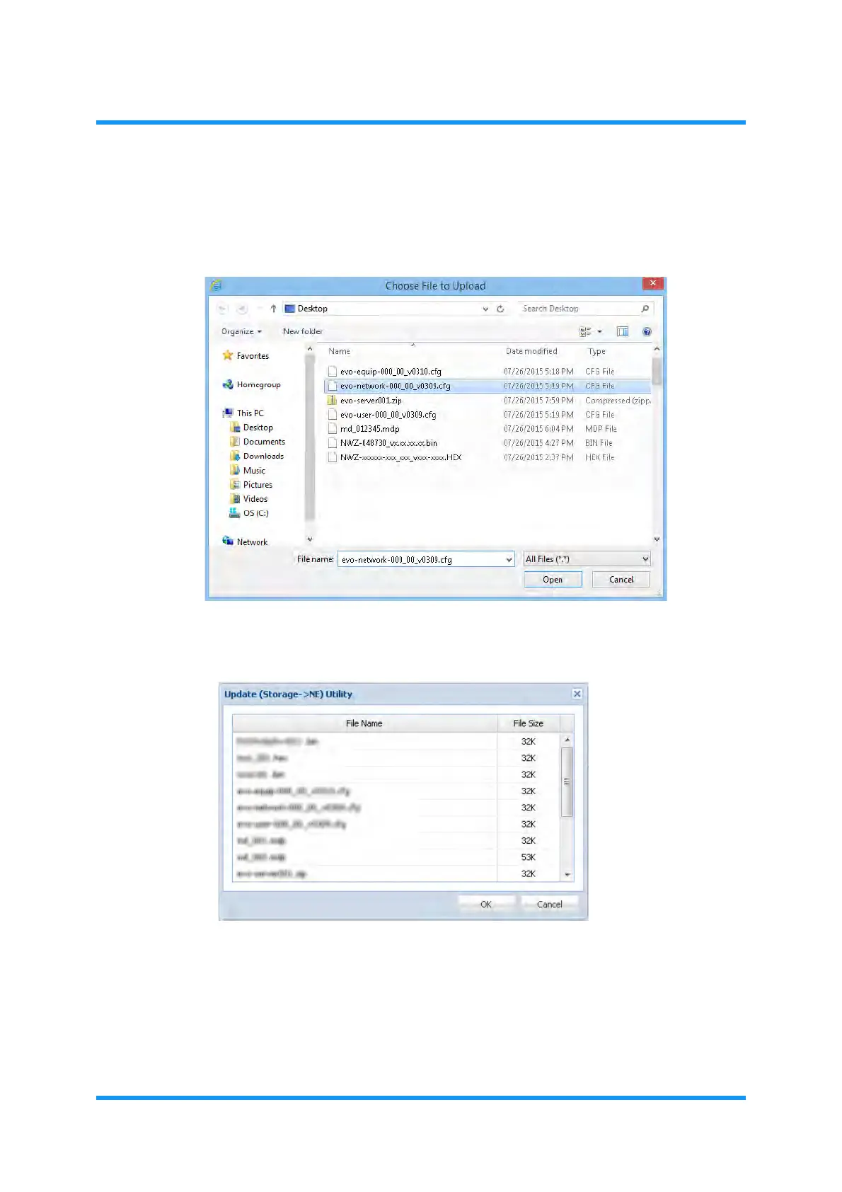 Figure 4-138 Update (Storage -> NE) Utility Option Window