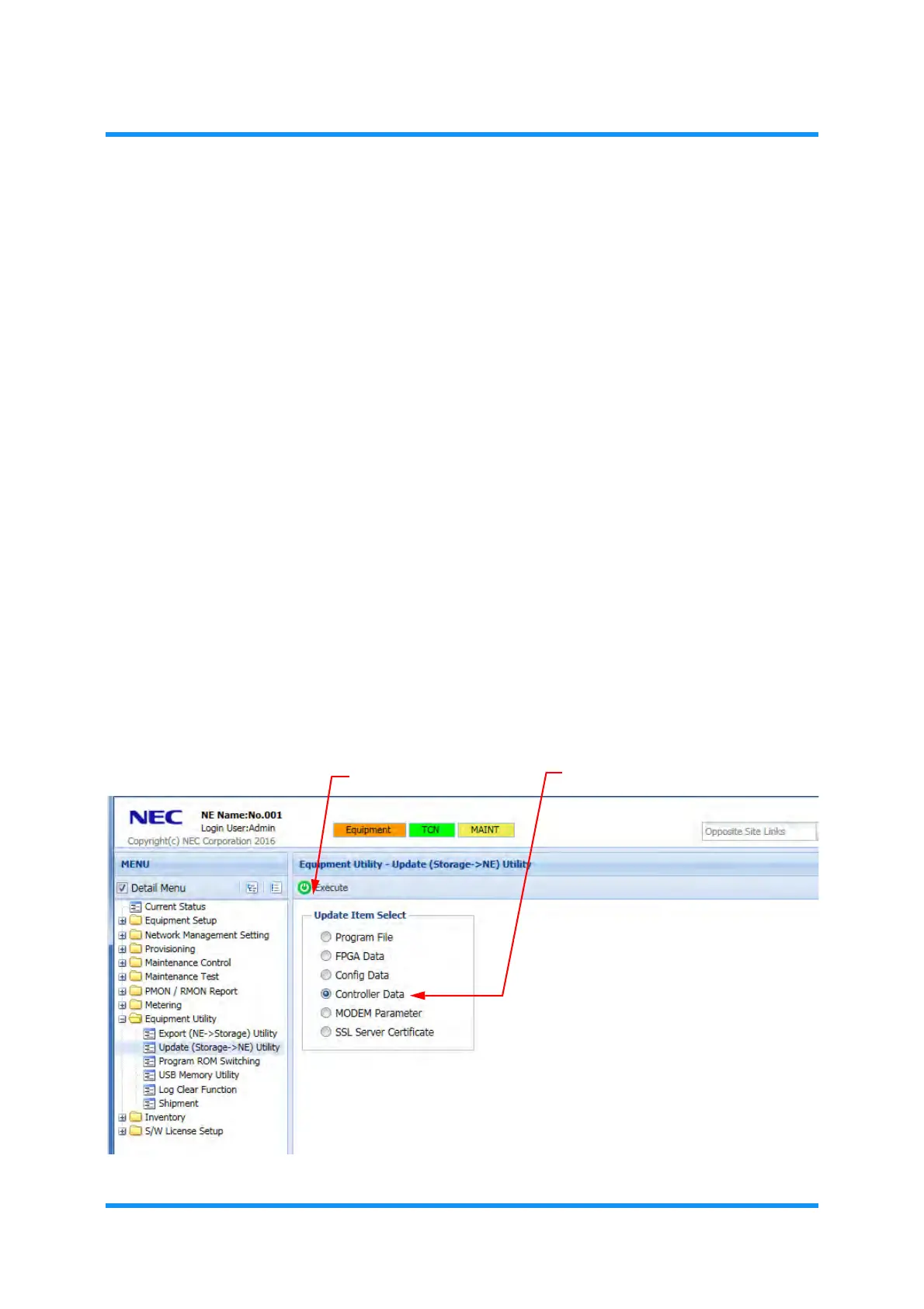 Update (Storage -> NE) Utility window appears. Select Controller Data
