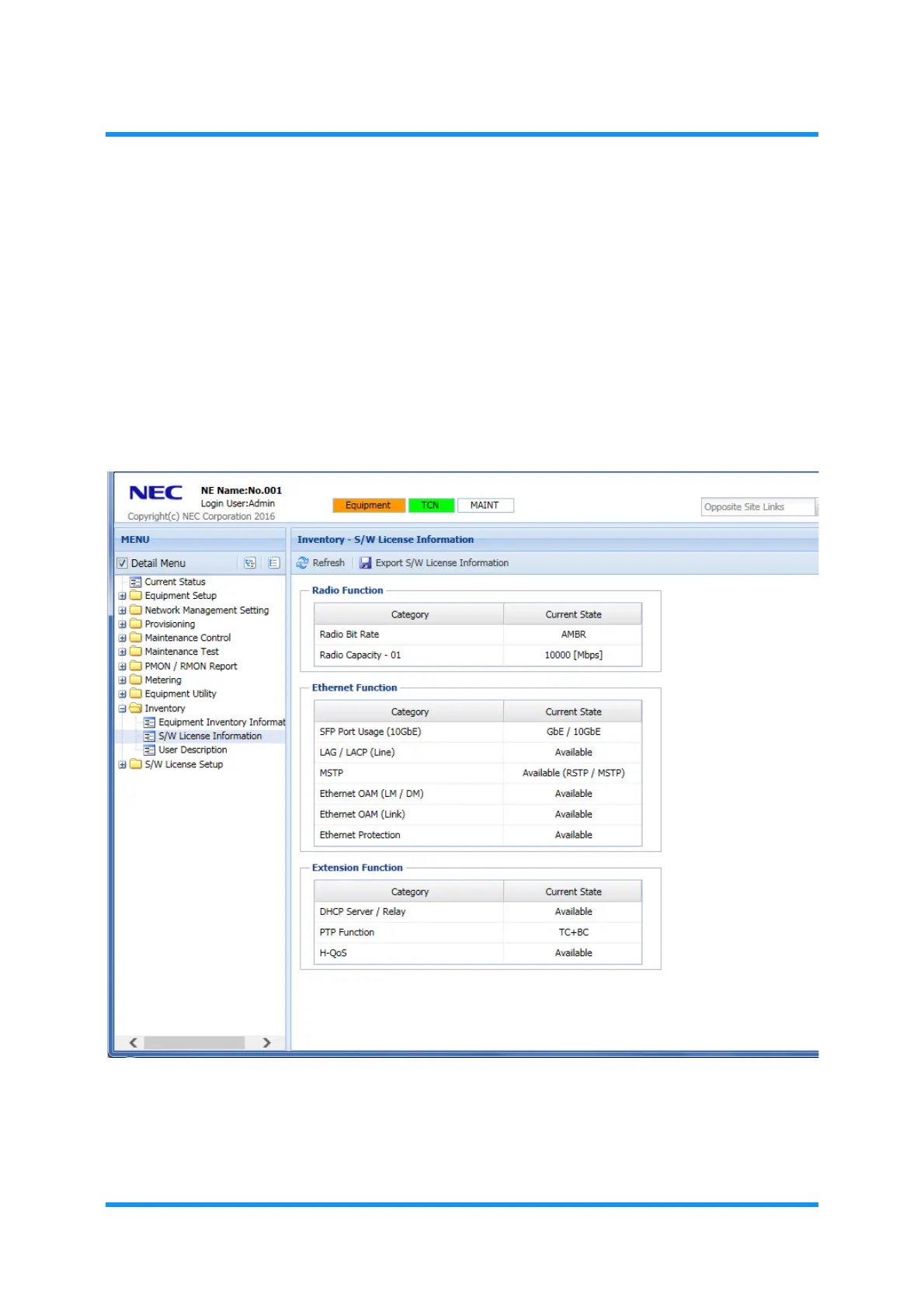 Following describes how to confirm and export the Software License Key of the