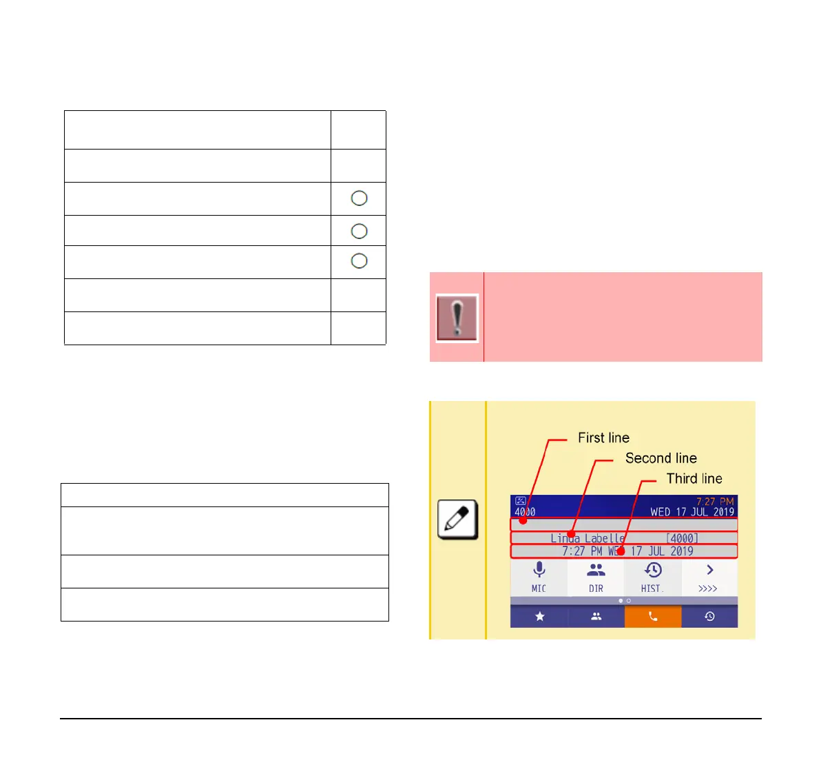 third lines of the call screen.