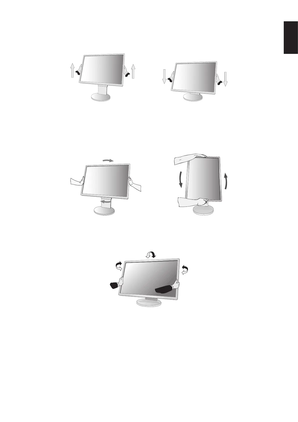 To rotate screen, place a hand on each side of the monitor screen and turn clockwise from landscape to portrait or counter-