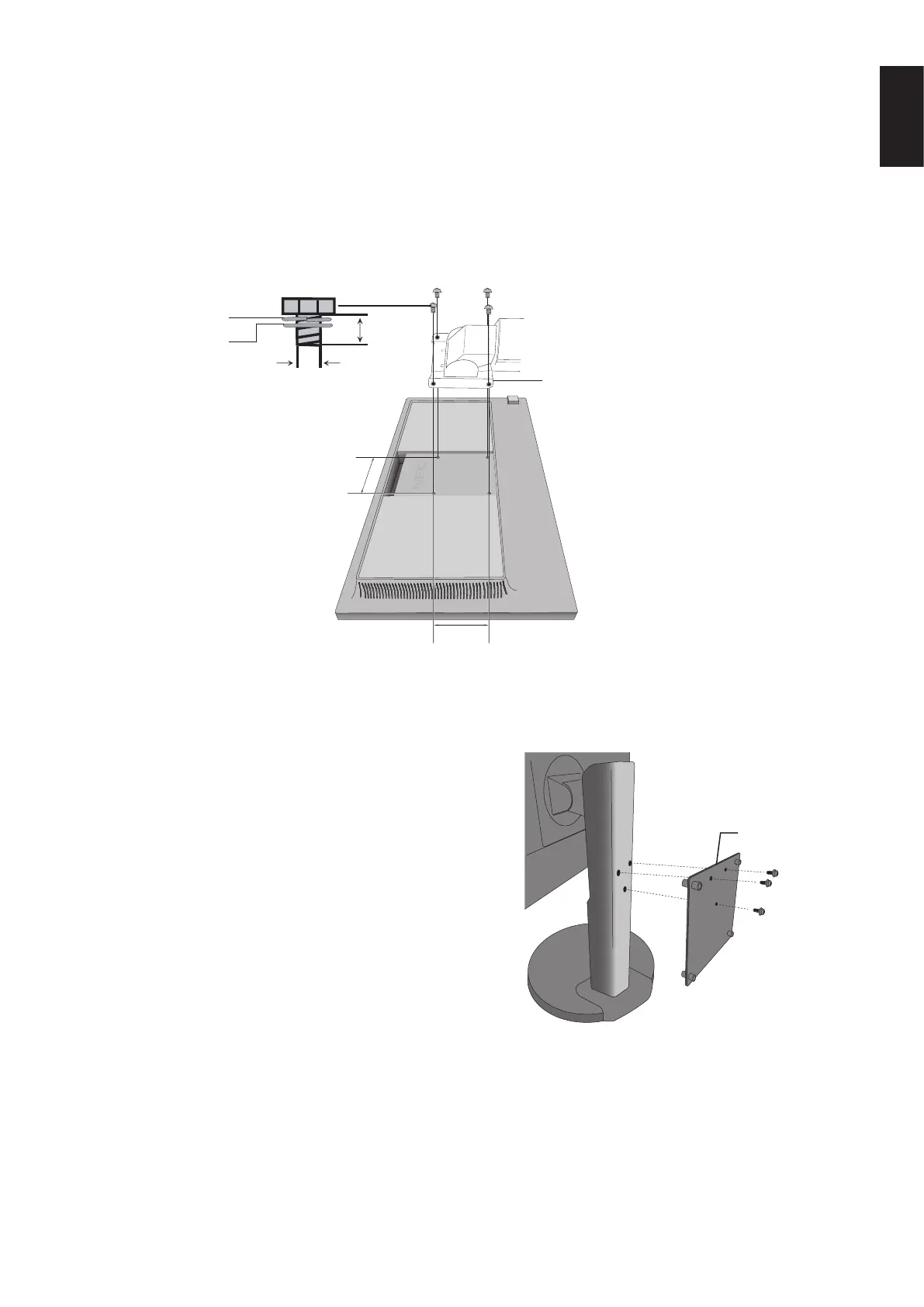 Caution: Use ONLY the screws (4 pcs) that were removed from the stand or the specified screws (Figure F.1) to avoid