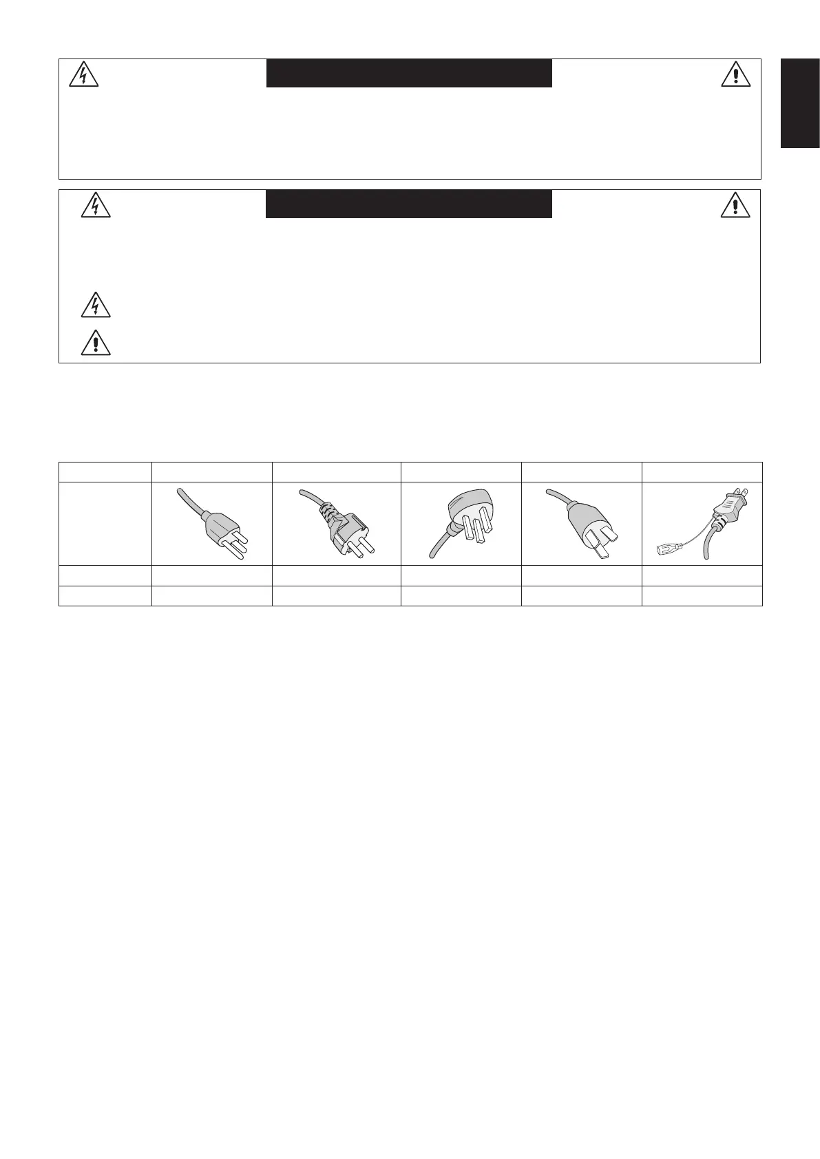 CAUTION: Please use the power cord provided with this display in accordance with the table below. If a power cord is not