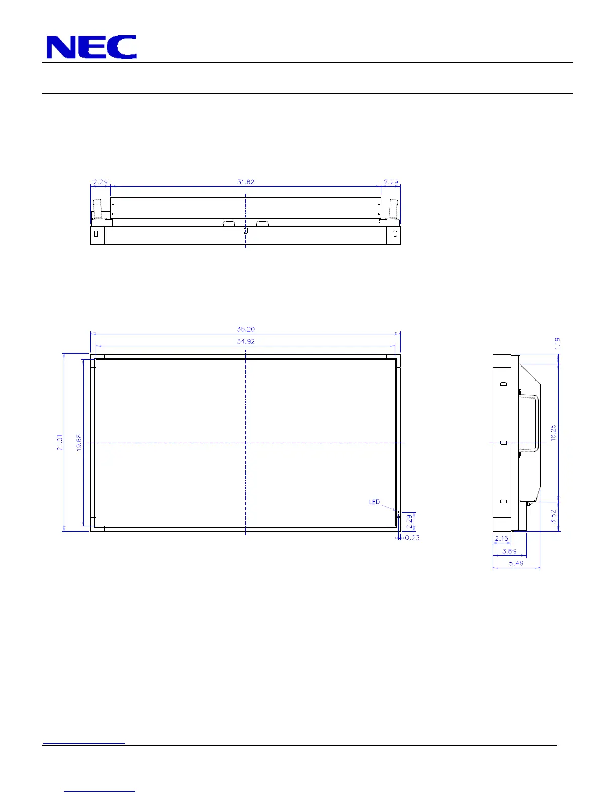 NEC LCD4020-2 - Display Dimensions; Front, Top & Right Side