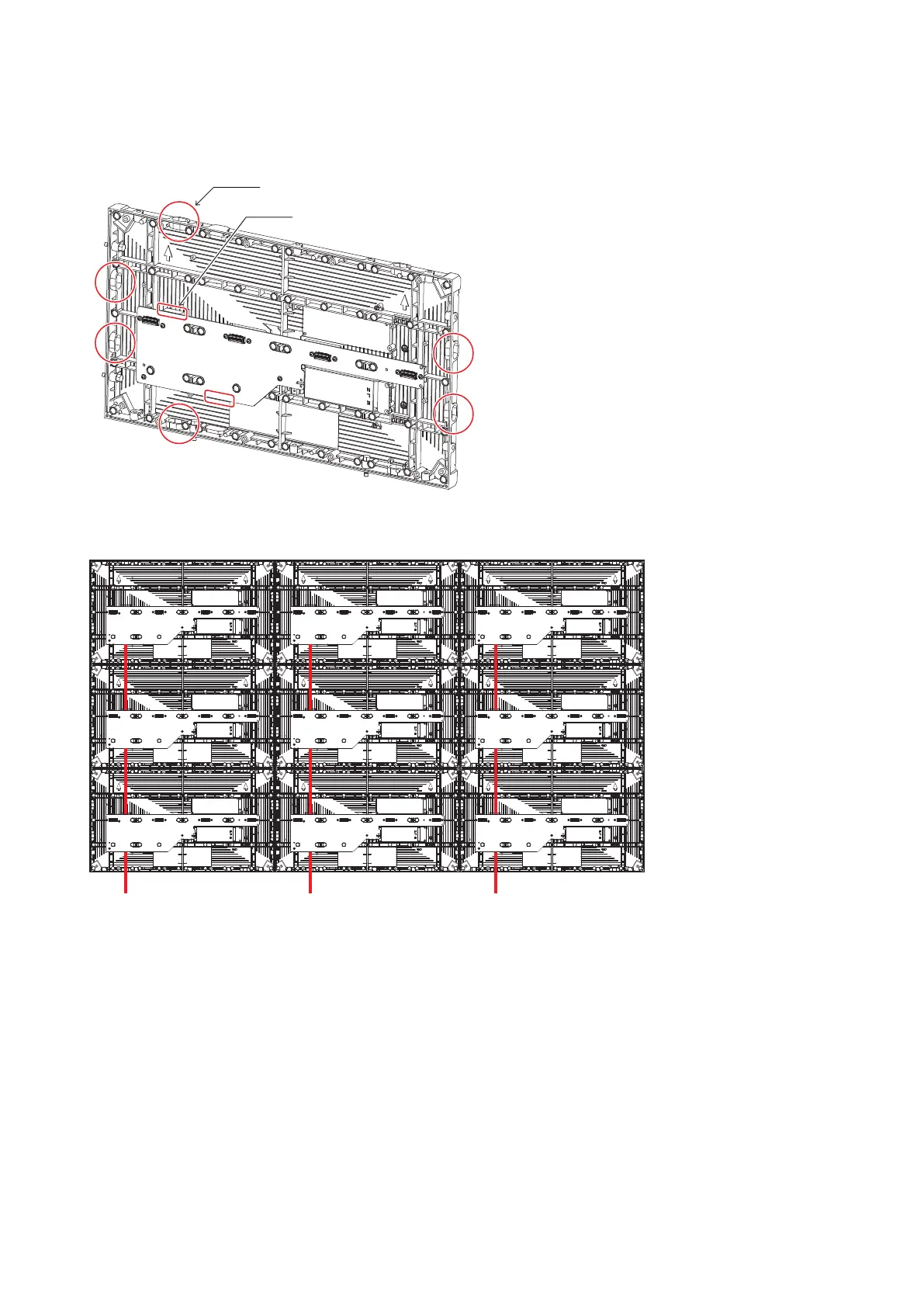 Connect the LAN cables for the signal bet ween t he LED m odules. Use the t hrough holes t o pass t he cables