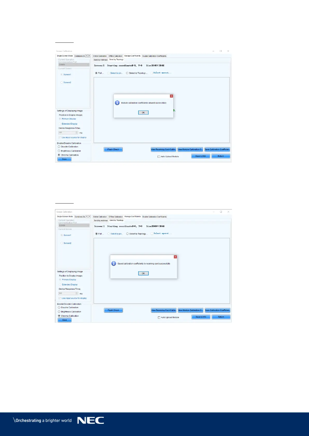 Click Save Calibration Coefficients to Receiving Card. Step 7)