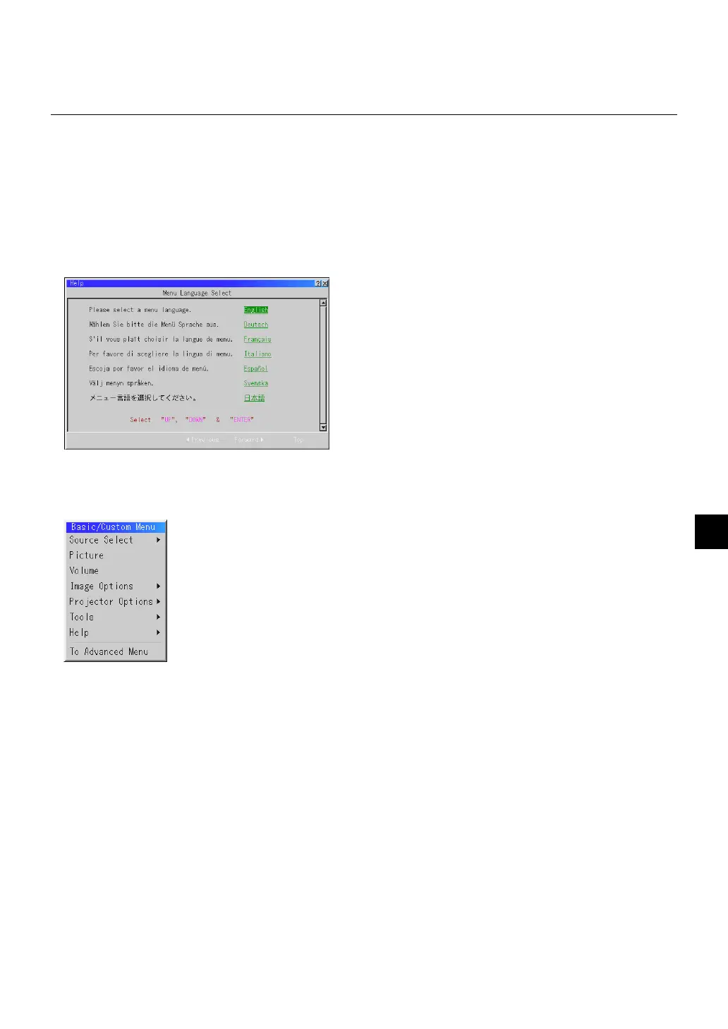 3. The Basic/Custom menu will be displayed in the language you